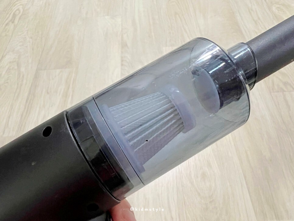 이 부분을 분리해서 필터를 빼고 쓰레기를 비우면 되는데요. 후기를 보니 구입 시 필터가 이상하게 꽂혀서 오는 분들이 많더군요. 손이나 니퍼 등을 이용해서 살살 달래가면서 필터를 분리하면 잘 빠집니다.