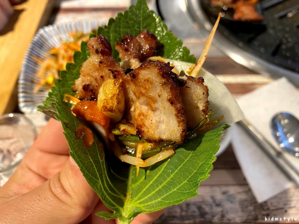 깻잎에 쌈무, 파재래기, 구운마늘, 고기 두 점, 쌈장, 이것은 국룰!