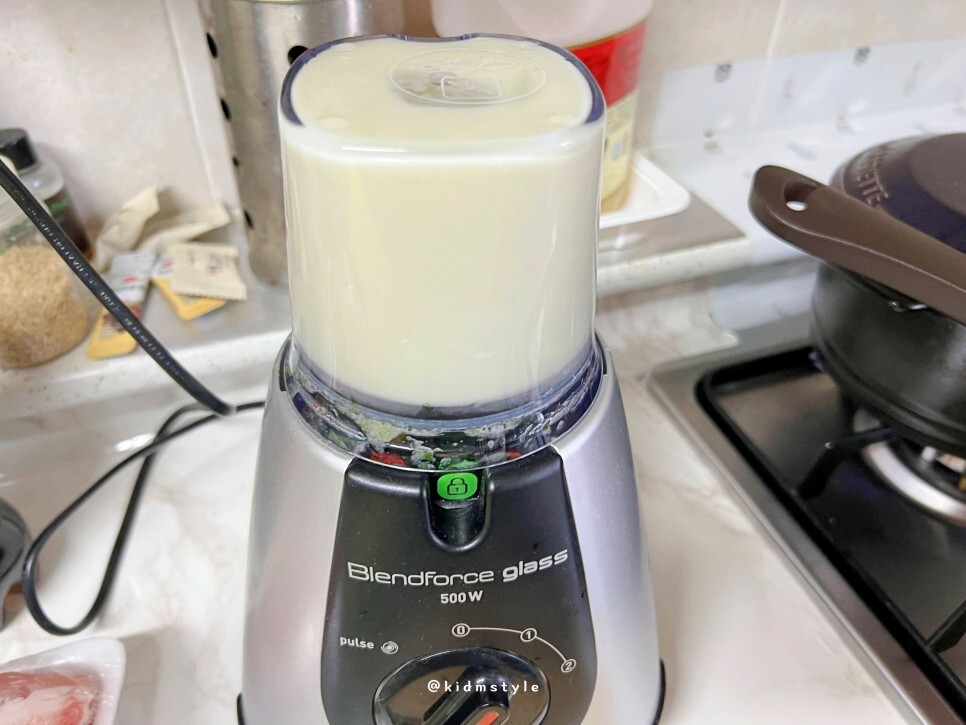 한 번에 못 갈아서 2번으로 나눠서 갈았습니다. 믹서기에 갈 때 물도 넣어줘야 잘 갈아집니다.