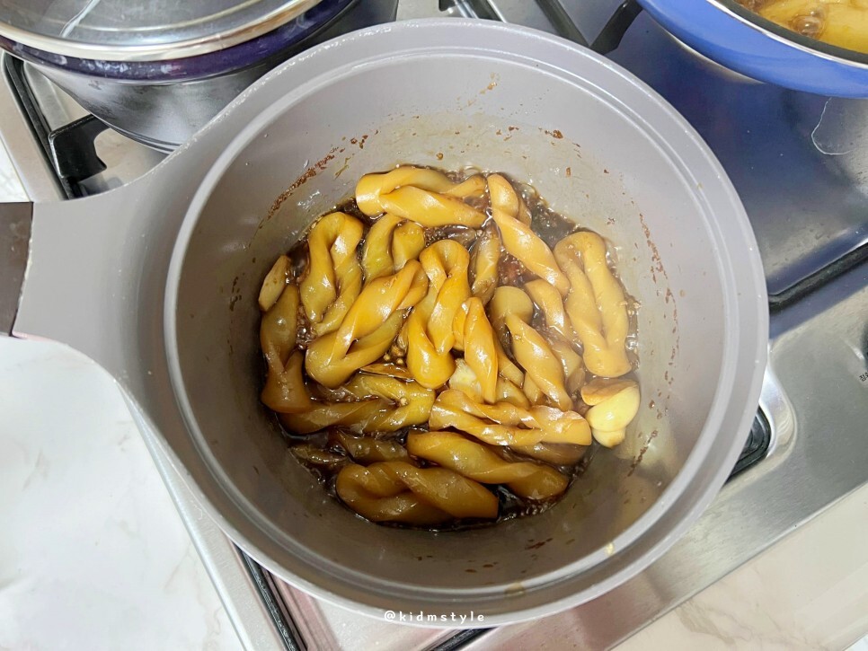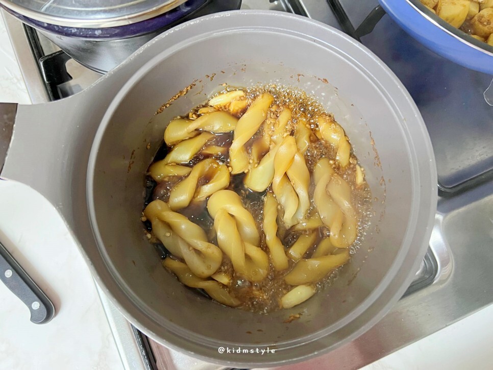 그리고 중약불에 끓이면서 조린다.