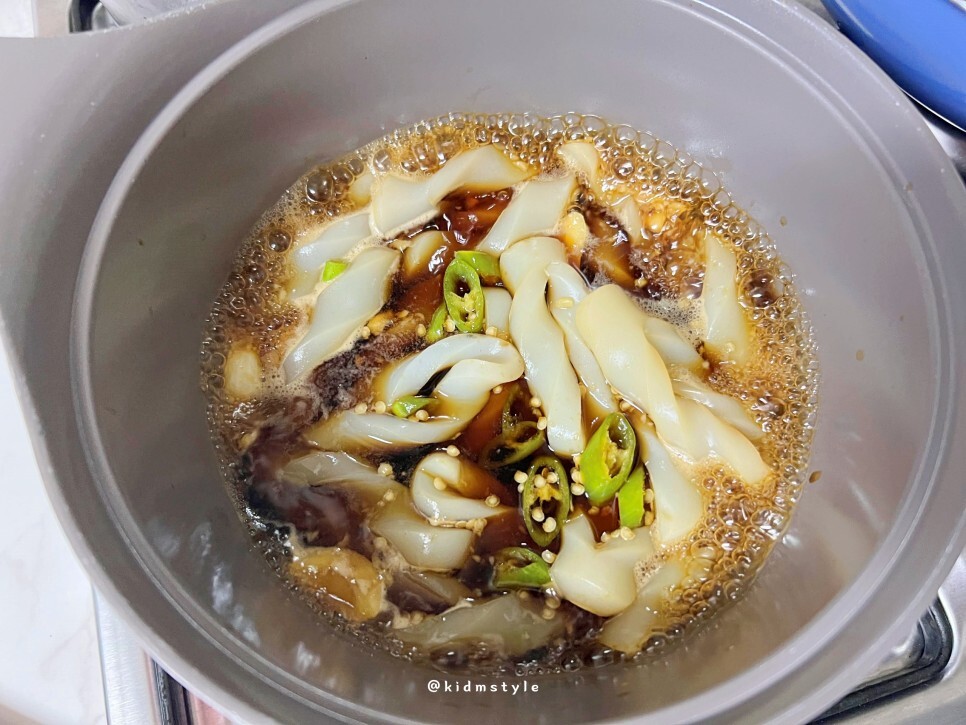 끓기 시작한다. 잘게 썬 땡초와 편 썬 마늘도 같이 넣고 끓여 준다. 땡초를 넣으니 살짝 매콤하니 괜찮더라. 센 불에 10분 정도 끓여준다.