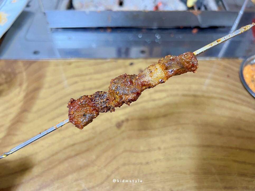 다른 양꼬치 전문점에서 만날 수 있는 자동으로 돌아가는 시스템이 아니다. 그래서 굽기가 조금 어려운데 마침 사장님이 직접 구워주신다고 가지고 가시네.