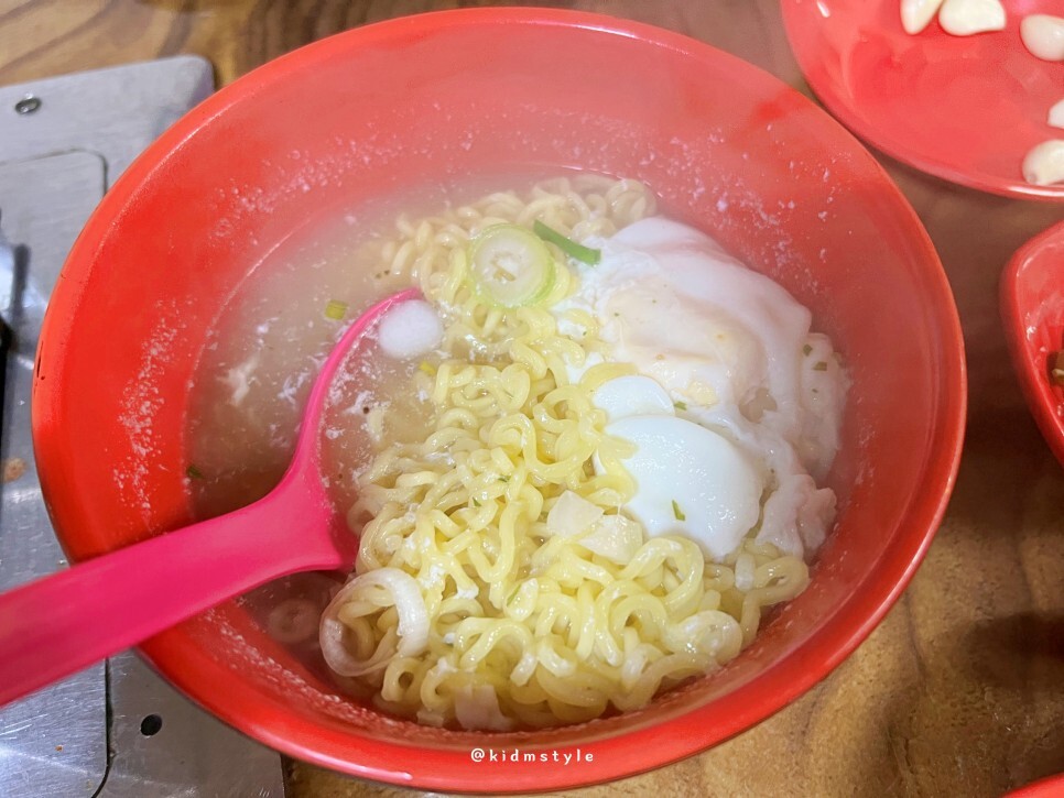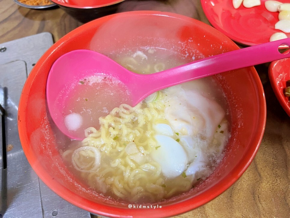 일반적인 라면 느낌이 아니다. 매운맛은 하나도 없고 구수한 국물과 약간의 짠맛이 느껴진다. 연변에서 인기가 많은 라면이라는데 먹어보니 조금 특이하다. 떡국 떡과 계란, 대파를 추가로 넣어주셨네.