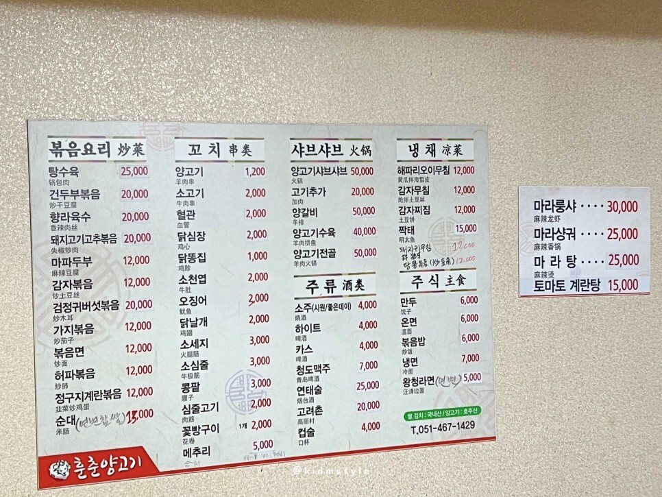 메뉴가 꽤 많다. 양꼬치 20개를 주문해 본다. 개당 1,200원으로 요즘 치고 가성비가 너무 좋은 편이다. 다양한 요리도 있는데 다른 손님들이 맛보는 걸 보니 꽤 맛나 보인다.