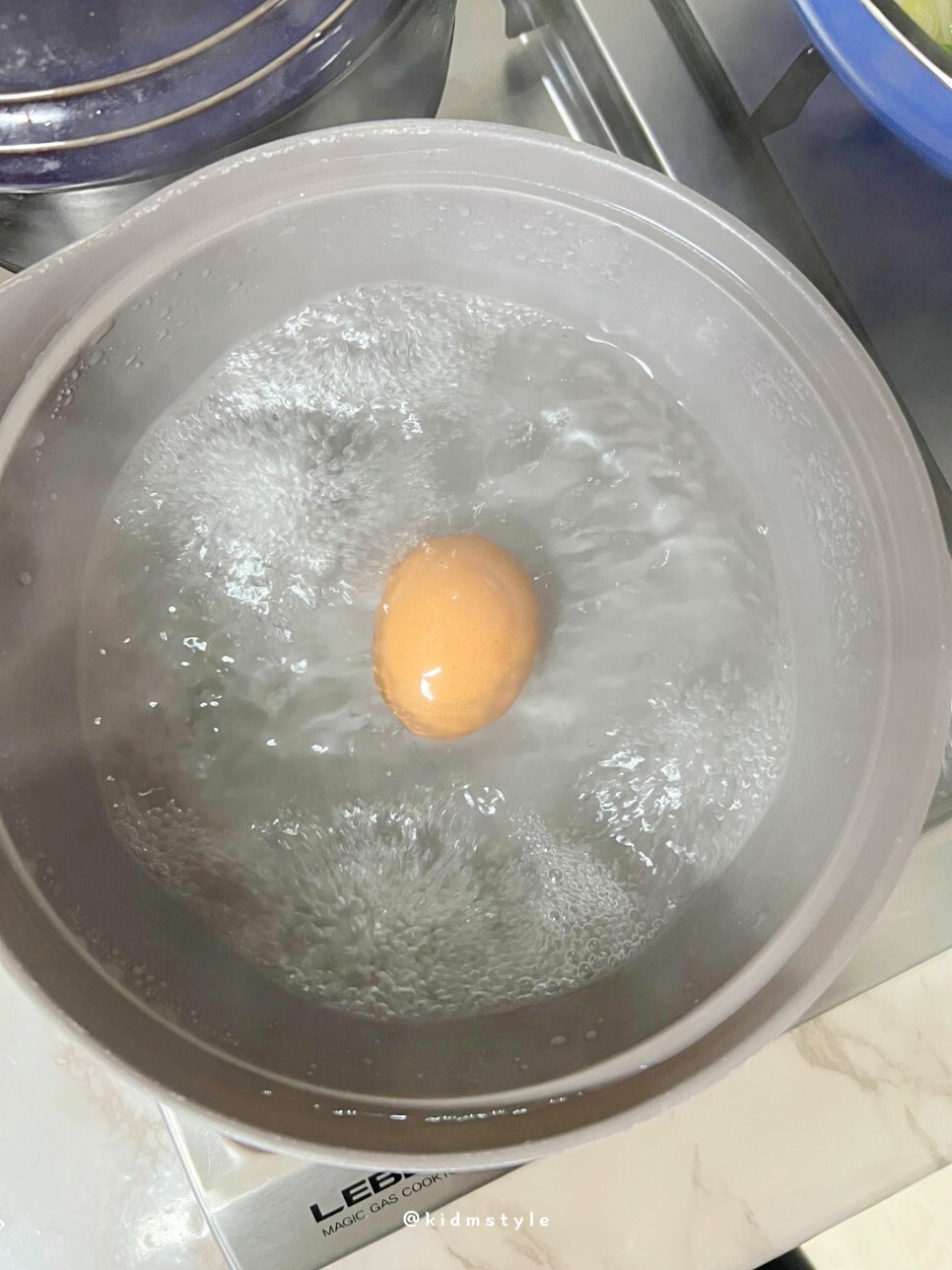 그리고 옆에 냄비를 준비해서 계란을 삶는다. 삶는 시간은 개인 취향인데 오늘은 반숙보다는 완숙이 땡겨서 12분 정도 삶아준다.