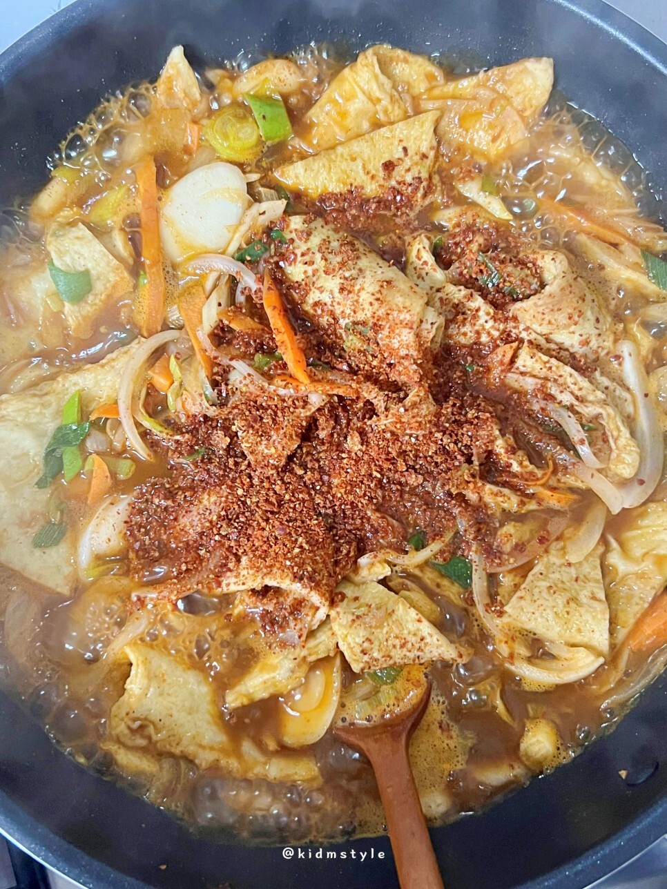 고춧가루도 팍팍 뿌려줘. 참고로 나는 요리할 때 계량은 잘 하지 않는다. 어릴 때부터 어머니께서 요리하는 걸 보고 자라서 그런지 집에 계량 도구가 없다.
