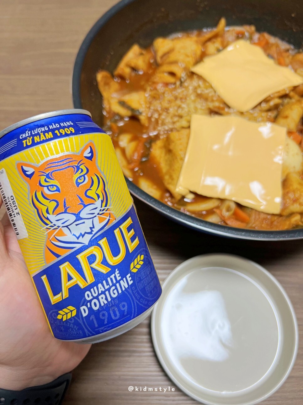 술 마실 생각이 없었는데 안 마실 수가 없겠더라. 술장고에 있던 라루 맥주 한 캔 꺼내온다. 누가 베트남 여행갔다왔다고 주더라.