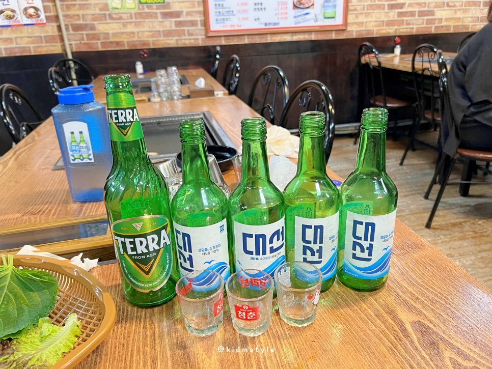 3명이 1차로 먹은 거. 생각 외로 술을 별로 안 먹었다. 이 멤버 보통 1차에 소주 7병 정도 마셔야 하는데. 그 말인즉슨 고기를 엄청나게 먹었다는 소리. 대패 흡입하고 기분 좋게 마무리한다.
