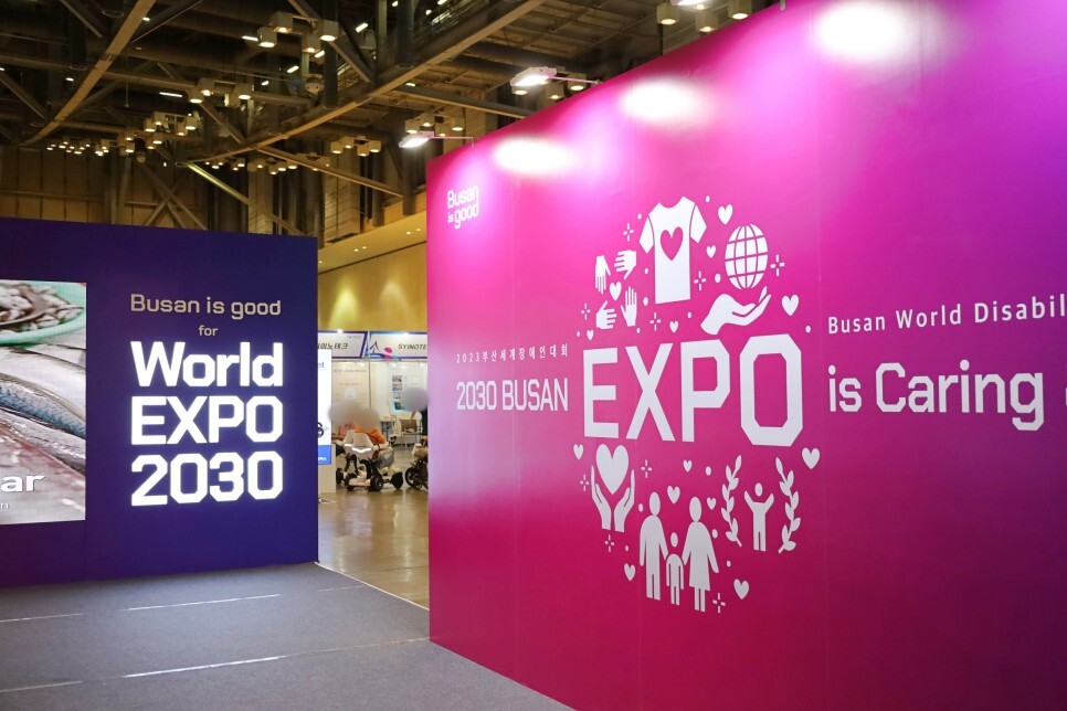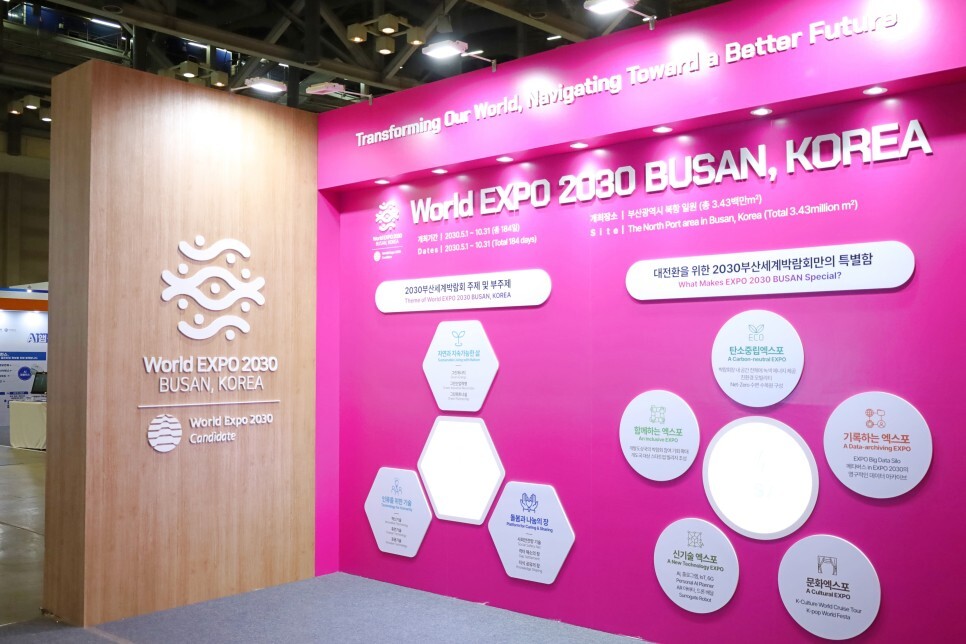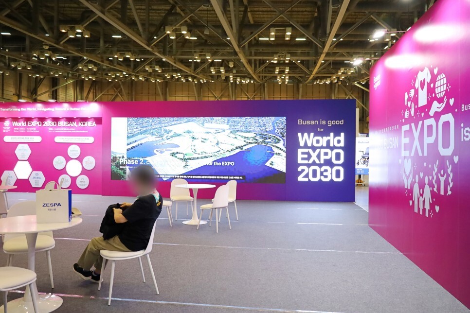 오늘 이곳 대회의 개최 취지와 연계하여 2030 부산세계박람회의 부제 중 하나인 '돌봄과 나눔의 장'을 중점적으로 홍보하고 있었습니다.