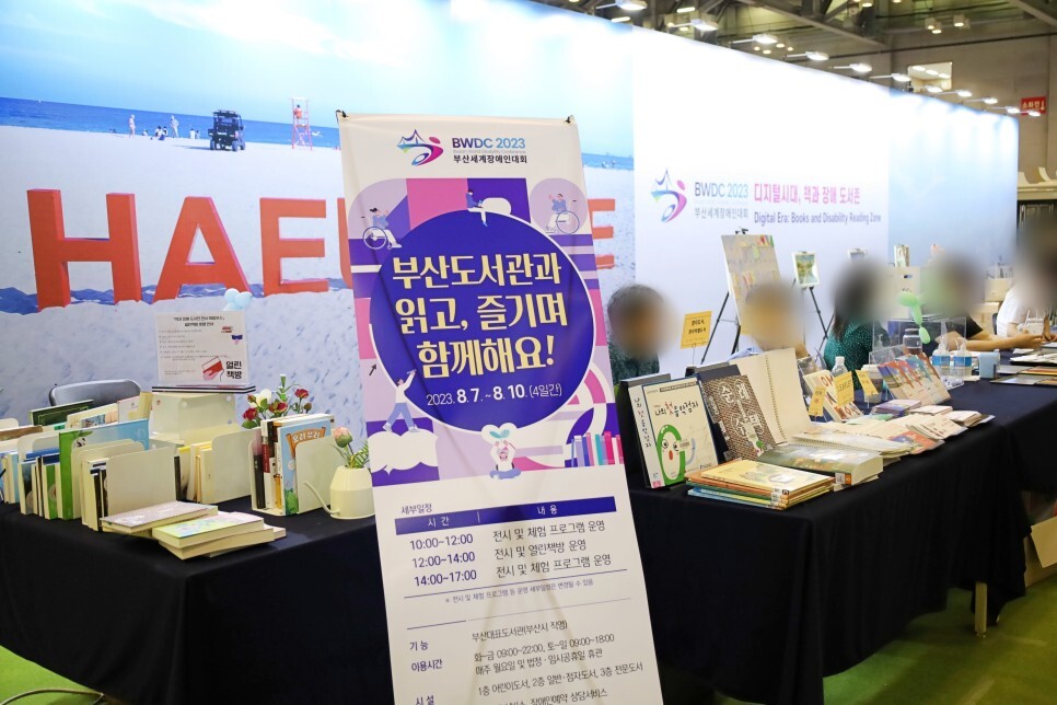 한쪽에는 점자 도서 등 장애인을 위한 도서가 전시되어 있어서 체험하는 등 인기가 많은 모습을 볼 수 있었어요.
