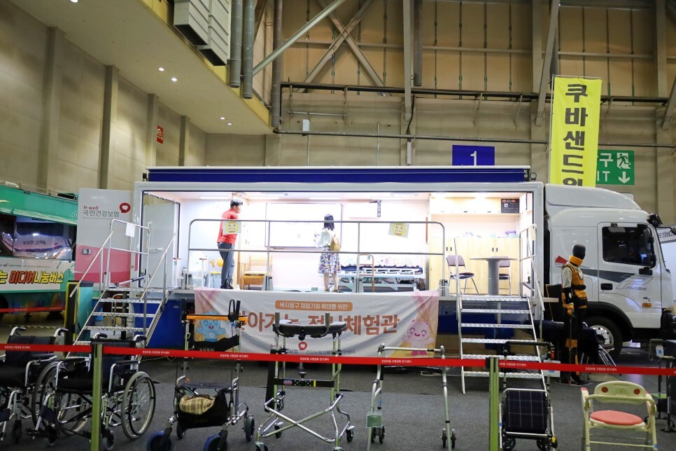 보행 약자를 위한 보행기 등 다양한 복지용구를 직접 체험해 볼 수 있는 공간도 여유 있게 마련되어 있어서 관람객들의 참여가 계속 이어지더군요.