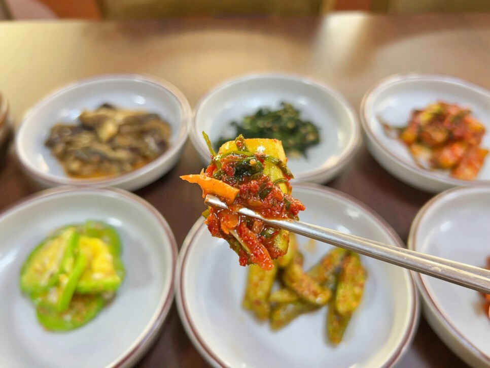 반찬도 하나씩 맛봐요. 어쩜 이리 맛있는지 진짜 집밥 생각나는 반찬들입니다.