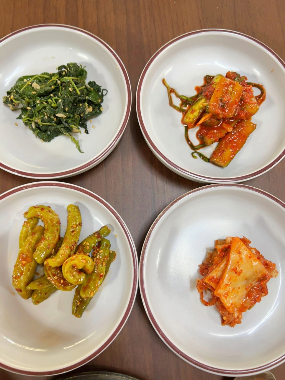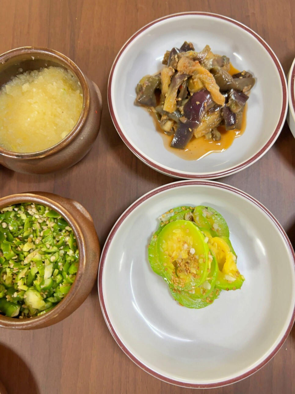 깻잎나물, 오이소박이, 꽈리고추무침, 묵은지 김치 순서인데요. 이 반찬들도 하나하나 정말 맛있습니다. 꽈리고추는 고소한 맛이 특별하게 다가왔고요. 푹 익은 김치는 김치찌개를 끓이면 어떨까 하는 생각이 절로 났습니다.