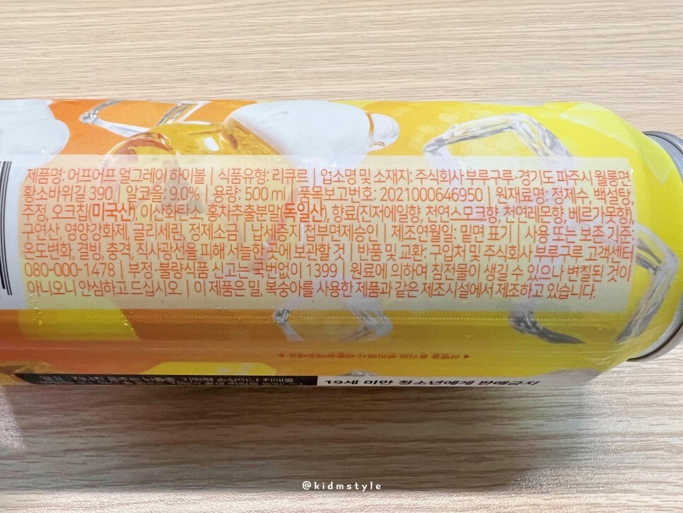 먼저 얼그레이를 맛보기로 한다. 어프어프 얼그레이 하이볼은 홍차추출분말 0.33% 함유, 알코올은 9%이다.
