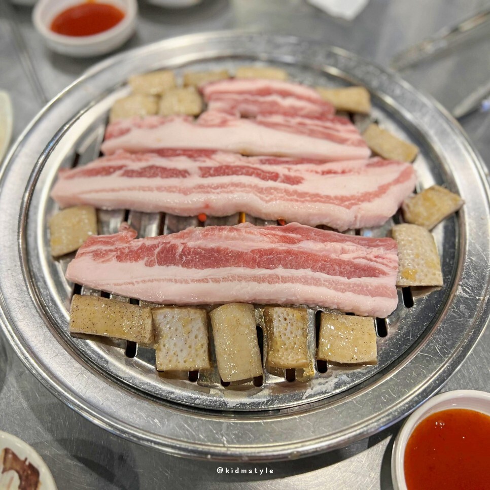2명이라 3인 기준 한 판을 주문하였다. 예전에 한창 먹을 때는 둘이 오면 추가 포함 삼겹살을 5인분 정도는 먹었던 것 같다. 이 집은 삼겹살도 맛있는데 껍데기가 정말 맛있다. 남포동 일대에서 생껍데기는 이 집이 제일 잘한다고 생각한다.