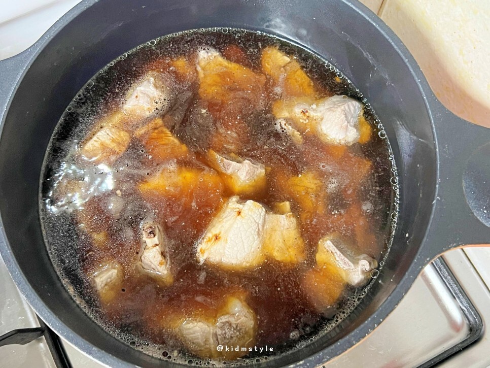 이렇게 넣고 강불로 20분간 끓이면서 졸여준다.