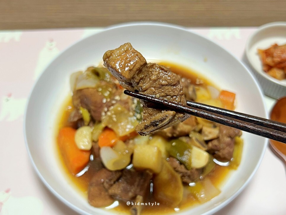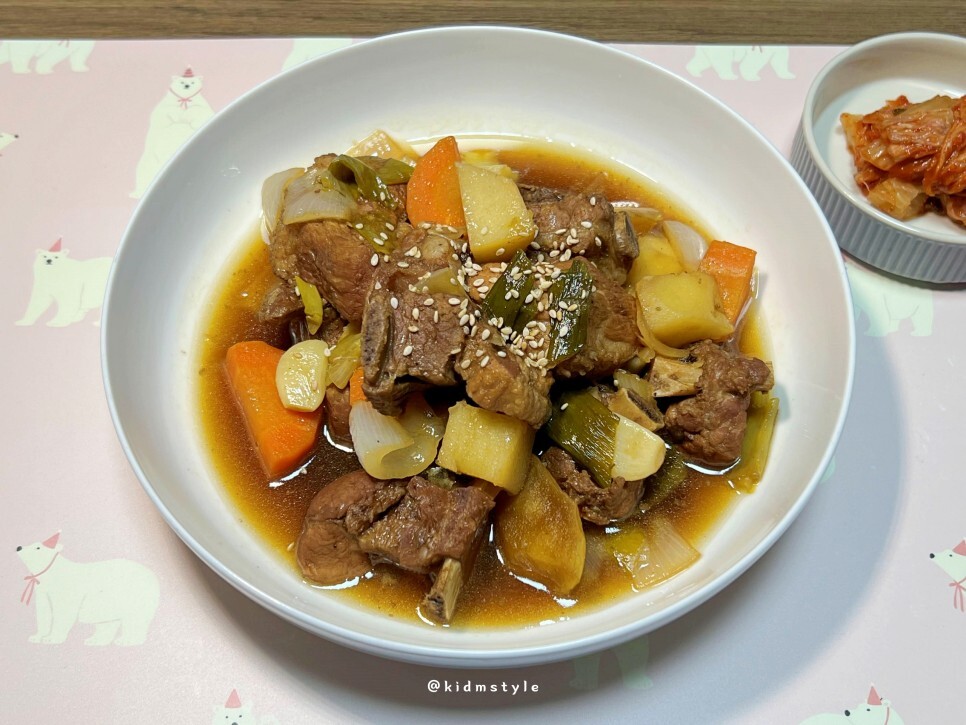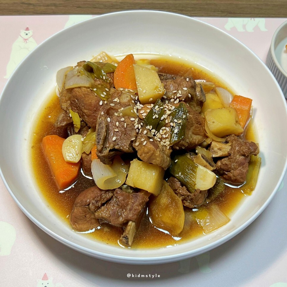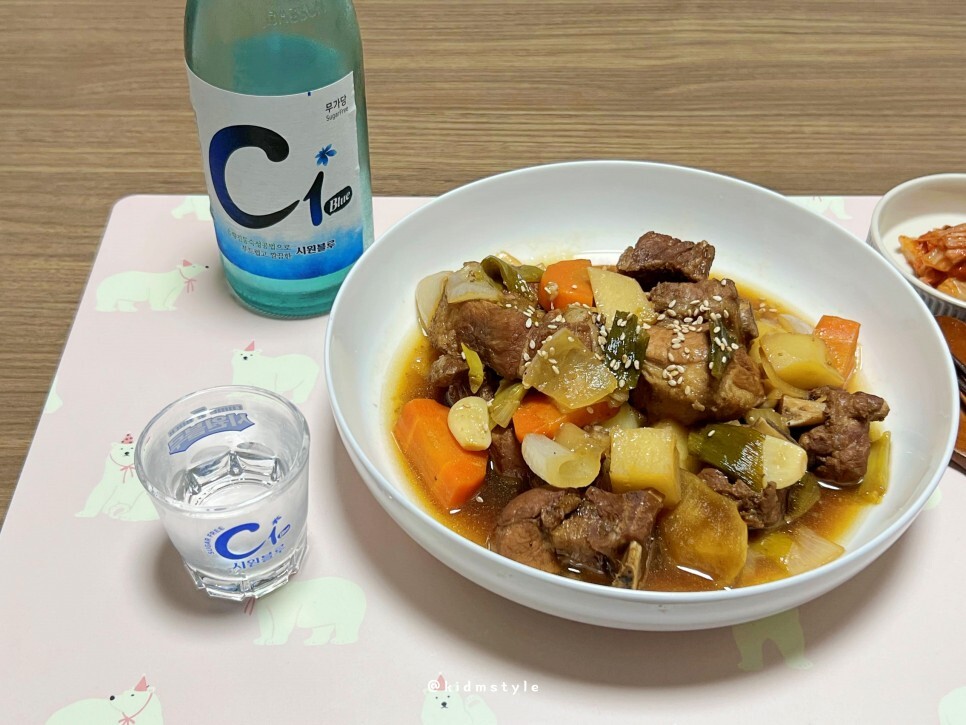 말 그대로 너무 맛있는 돼지갈비찜이다. 그리고 채소도 너무 잘 익었다. 감자와 당근 너무 맛있네.
