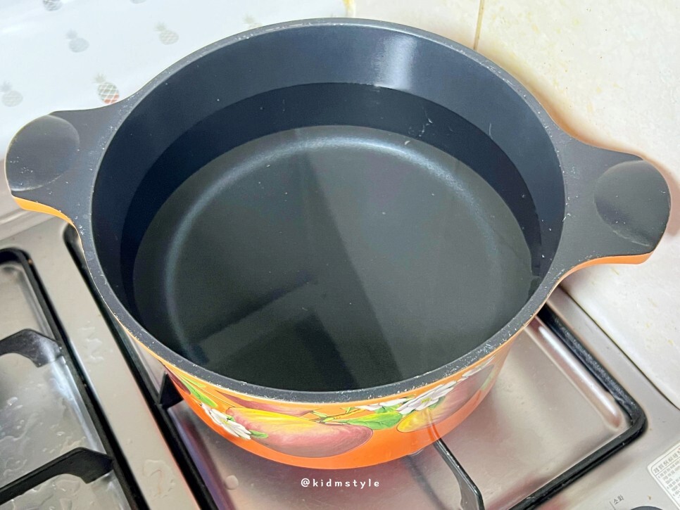 자 다시 시작이다. 냄비에 물을 부어준다. 물을 부어주는 양이 정해져있는 것 같던데 대충 어느 정도 잠길 정도로 부었다. 대략 1리터 정도는 부은 듯.