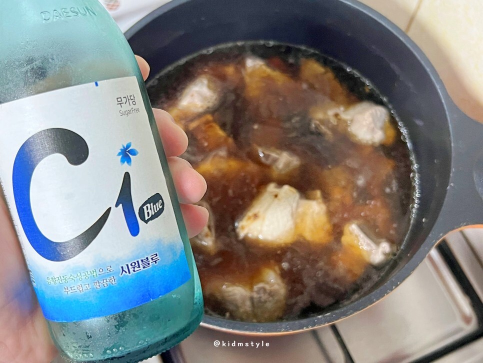 맛술을 넣어라고 하던데 나는 소주를 넣어주었다. 3숟가락 정도.