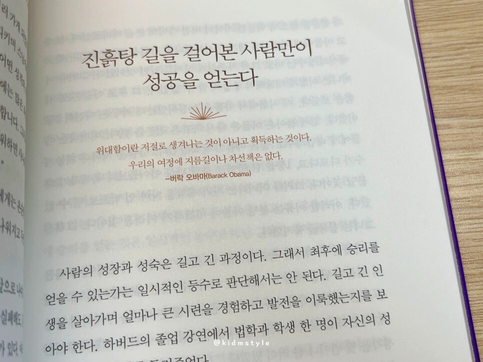 위대함이란 저절로 생겨나는 것이 아니고 획득하는 것이다. 우리의 여정에 지름길이나 차선책은 없다. -버락 오바마