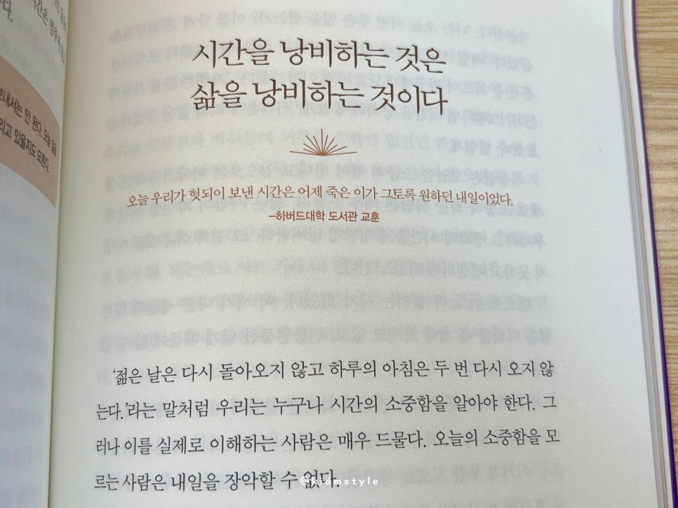 오늘 우리가 헛되이 보낸 시간은 어제 죽은 이가 그토록 원하던 내일이었다. -하버드대학 도서관 교훈