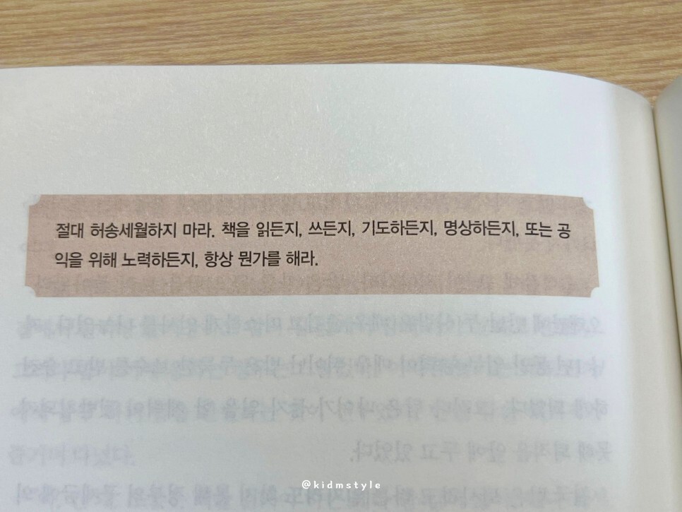 절대 허송세월하지 마라. 책을 읽든지, 쓰든지, 기도하든지, 명상하든지, 또는 공익을 위해 노력하든지, 항상 뭔가를 해라.
