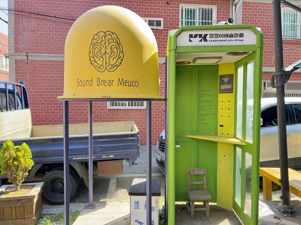 그 옆 한 공간에는 'Sound brear meucci' 사운드 브리어 메우치 라는 작품이 전시되어 있습니다. 공중전화에 깡깡이마을과 관련된 노래, 소리 등을 들을 수 있게 꾸며놓은 작품입니다. 참 이색적이었습니다.