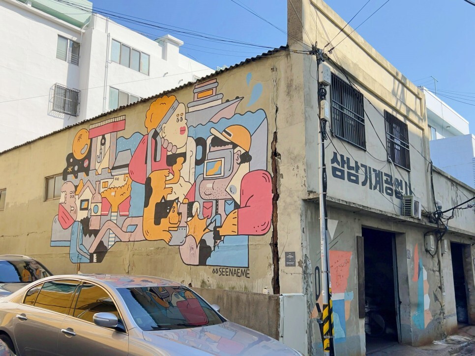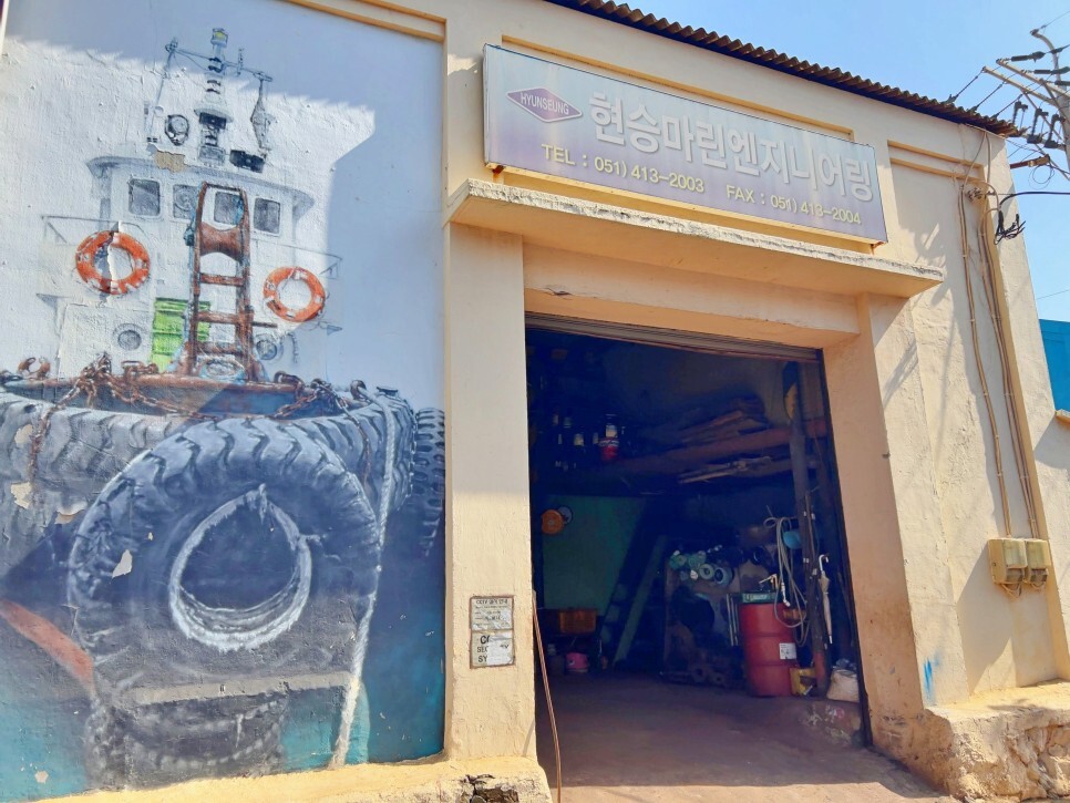 깡깡이예술마을 곳곳에 다양한 사업장이 있는데요. 외벽에 멋진 그림들은 마치 멋진 미술작품을 감상하는 듯한 느낌을 줍니다.