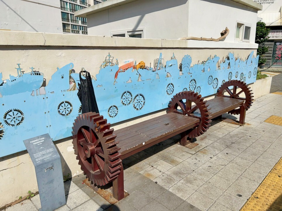벤치마저 인상적입니다. 깡깡이예술마을을 잘 표현하는 작품들입니다. 평생을 망치질로 살아오신 숙련공의 깡깡이 작업이 들리는 듯한 착각을 불러일으킵니다. 지난 세월 산업 최전선에서 고생하신 분들의 노고에 깊은 감사를 드리고 싶네요.