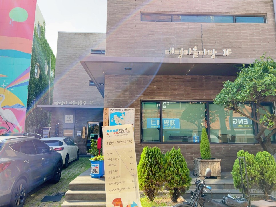 걷다 보면 만나는 깡깡이 생활문화센터의 전경입니다. 1층에는 마을다방, 마을부엌이 있고 2층에는 마을박물관, 대평동 마을회, 체력단련실 등이 있어서 주민들의 쉼터가 되어줍니다.