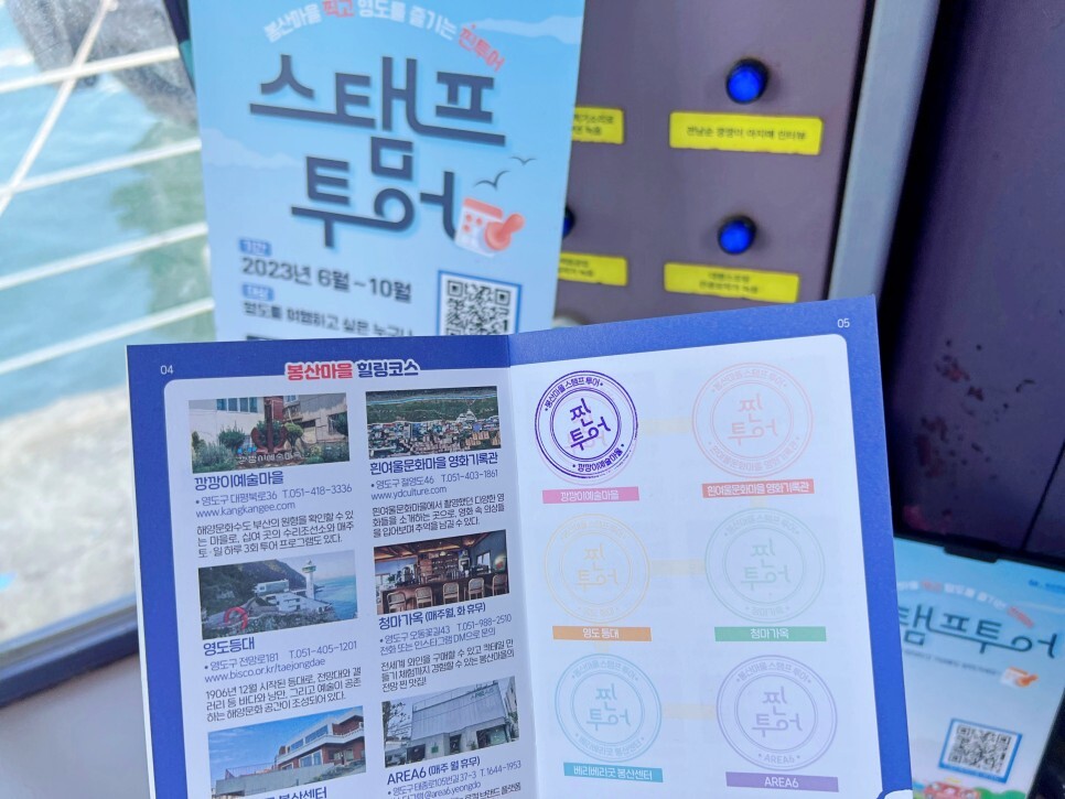 봉산마을 찍고 영도를 즐기는 찐투어를 주제로 하는 스탬프투어를 올해 10월까지 진행 중이네요. 영도를 방문하신다면 깡깡이예술마을 안내센터, 영도관광안내센터, 흰여울문화마을 영화기록관 등 5곳의 장소에서 스탬프북을 수령하여 스탬프투어를 해보셔도 좋을 것 같습니다.
