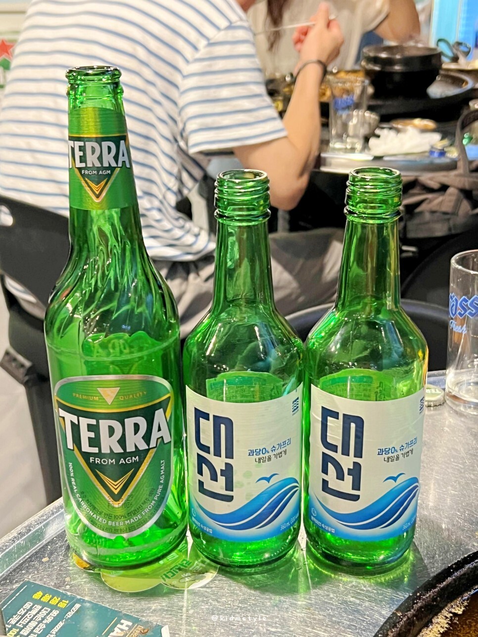 더운 여름날 저녁 딱 필요한 대선과 테라를 주문하여 친구와 함께 소맥으로 시원한 식사를 시작할 생각이다. 에어컨이 너무 시원해서 고깃집인데도 아주 쾌적하게 맛볼 수 있었다. 술잔도 센스 있게 시원하게 나오네.