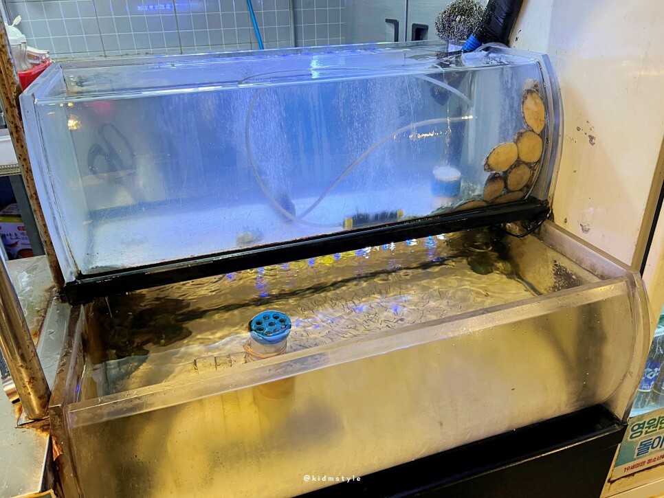 전복 수조를 찍어본다. 살아있는 전복이 제공된다.