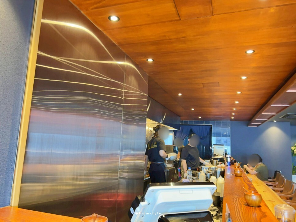 내가 앉은 자리인 카운터석이 대부분이다. 직원분들은 상당히 친절하며 에어컨이 빵빵하다. 여름에 에어컨 중요하다. 식당에 들어갔는데 냉방이 시원찮으면 별로잖아.