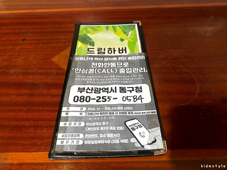 동구의 어느 식당을 가도 안심콜이 잘 되어 있다.
