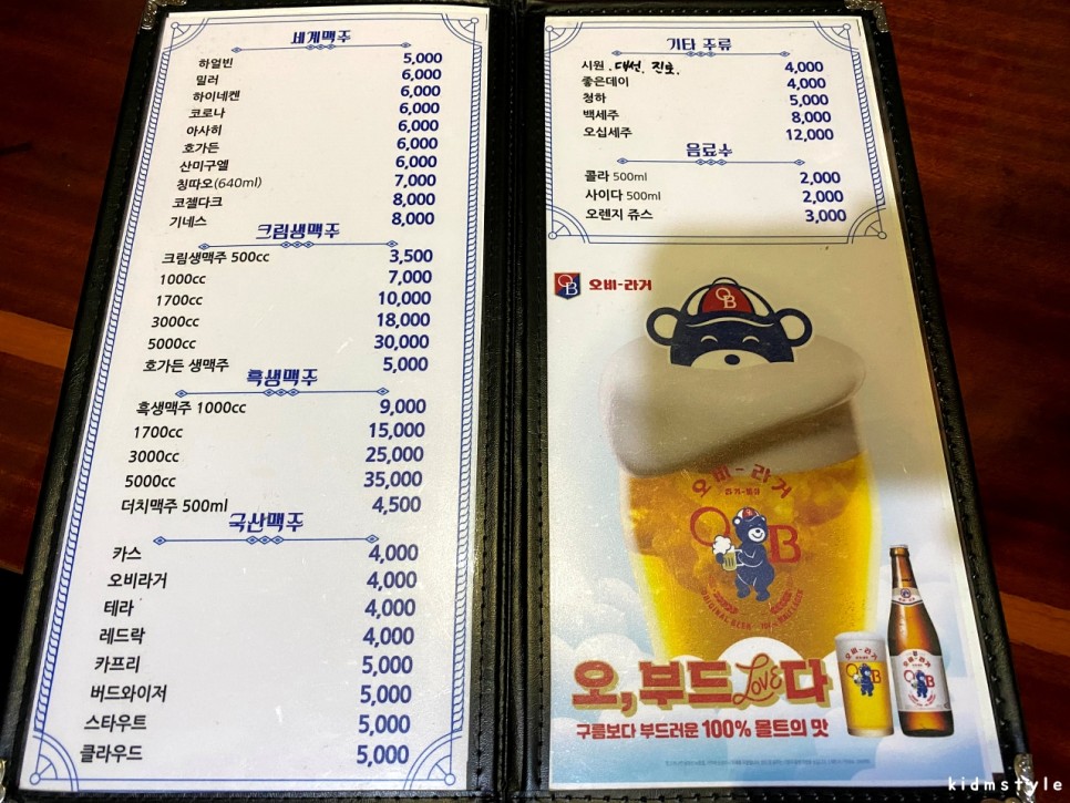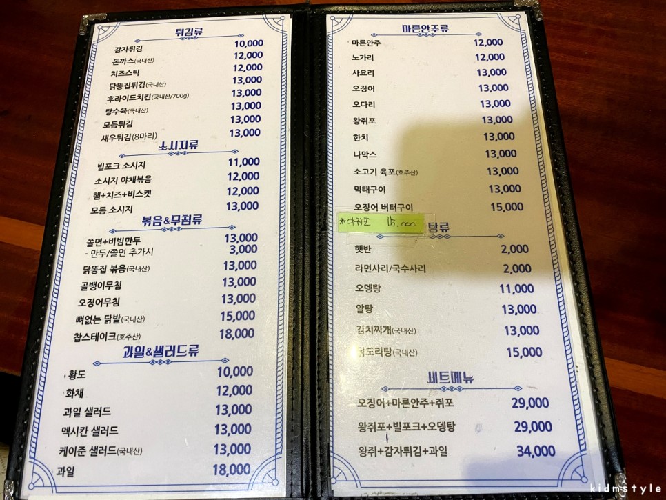 메뉴판을 한번 찍어보았다.