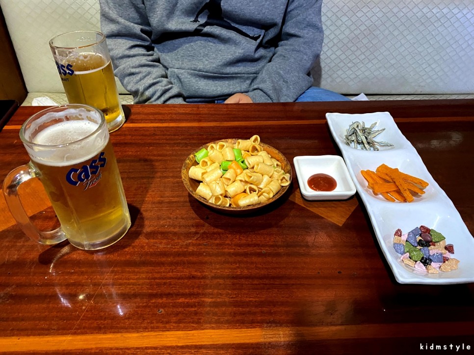 기본으로 제공되는 안주는 뻥과자, 멸치, 쫀드기, 석기시대 정도이다.