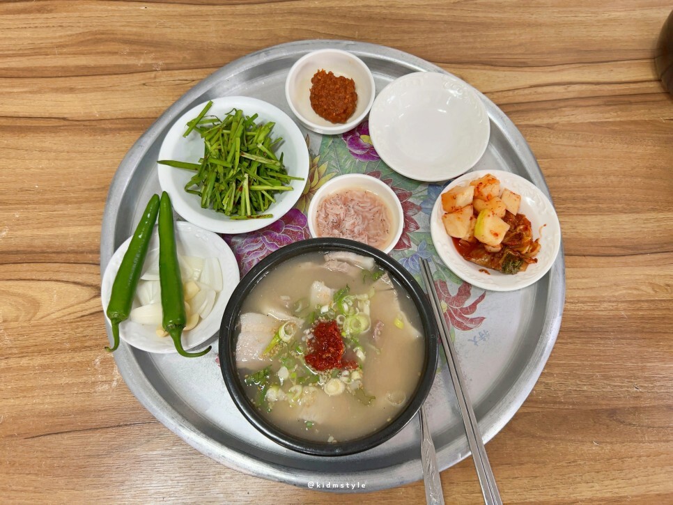토요일 점심으로 돼지국밥을 생각했던 날이다. 한 그릇 먹고 조금 걸어볼 생각으로 말이다. 돼지국밥은 푸짐하기 때문에 먹고 걷기에 딱 좋다. 다른 에어컨이 틀어져 있었는데 내가 입장하니 앞에 있는 에어컨을 얼른 틀어주신다.