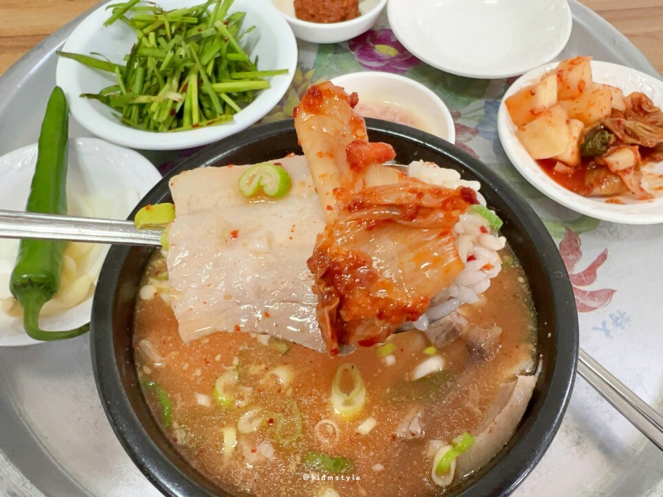 토렴을 제대로 해주기에 국밥은 뜨끈하다. 밥알 사이사이로 국물이 제대로 스며들어가 있어서 국물과 밥알의 일체감 역시 좋으며 꽤 조화롭다.