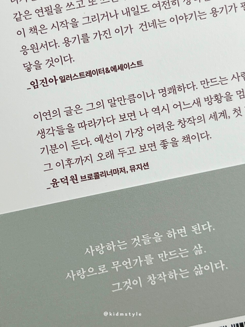 협업으로 책을 받아서 읽어보게 되었는데 창작자의 생각이 고스란히 담아져 있는 책이라 집중하며 읽었다. 간단하게 소개해 본다.