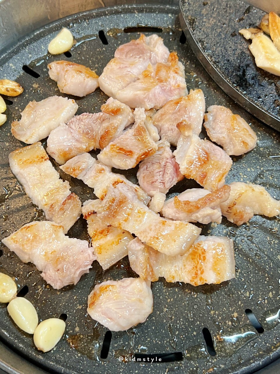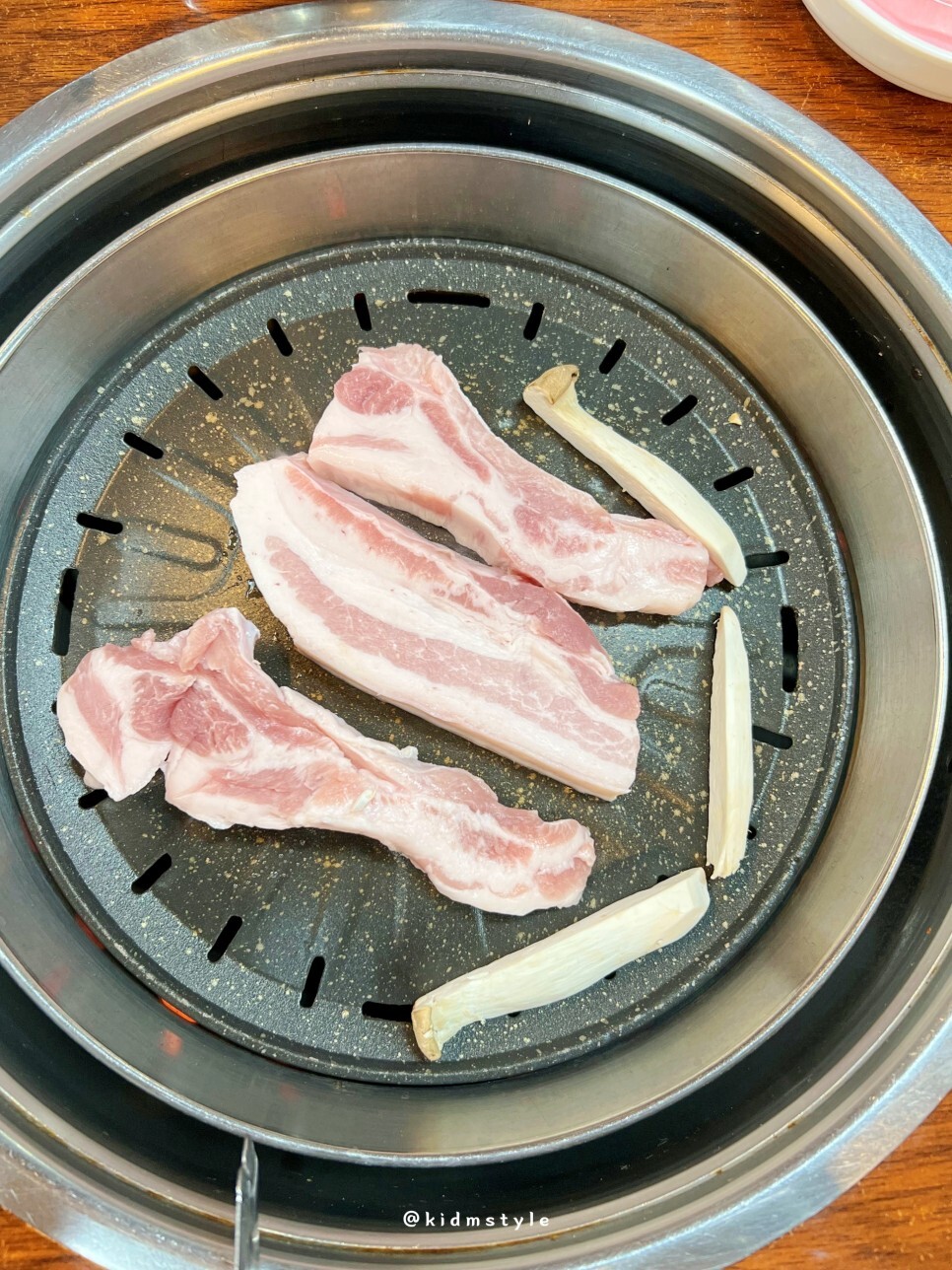 불판에 고기를 좀 올리고 찍은 사진이다. 고기 때깔이 참 좋다. 대신동 이 거리에 고깃집이 몇 군데 있는데 고기 질이 좋아야 살아남는다. 그만큼 잘하는 집이 많다.