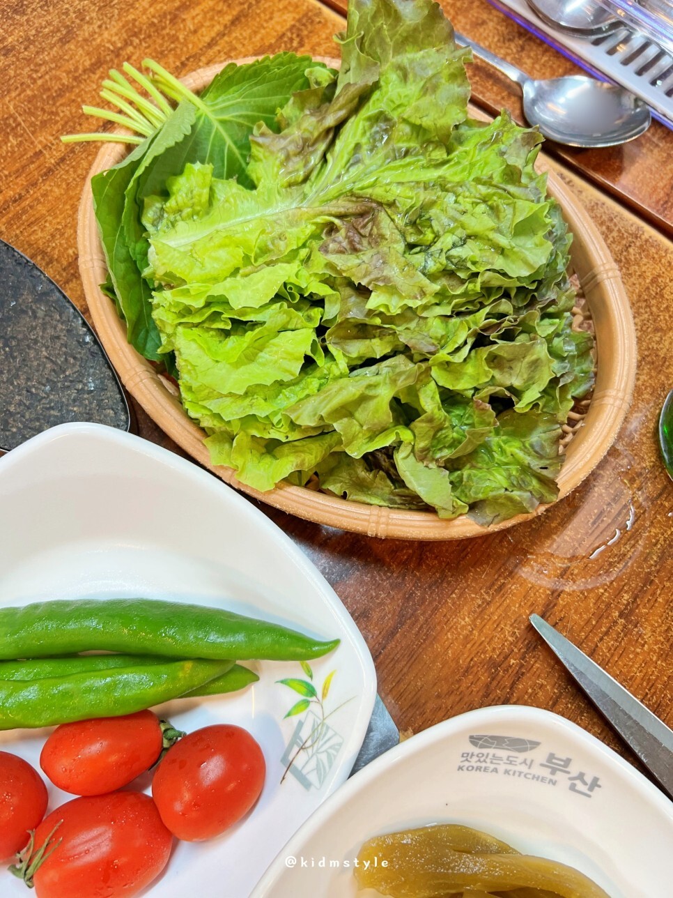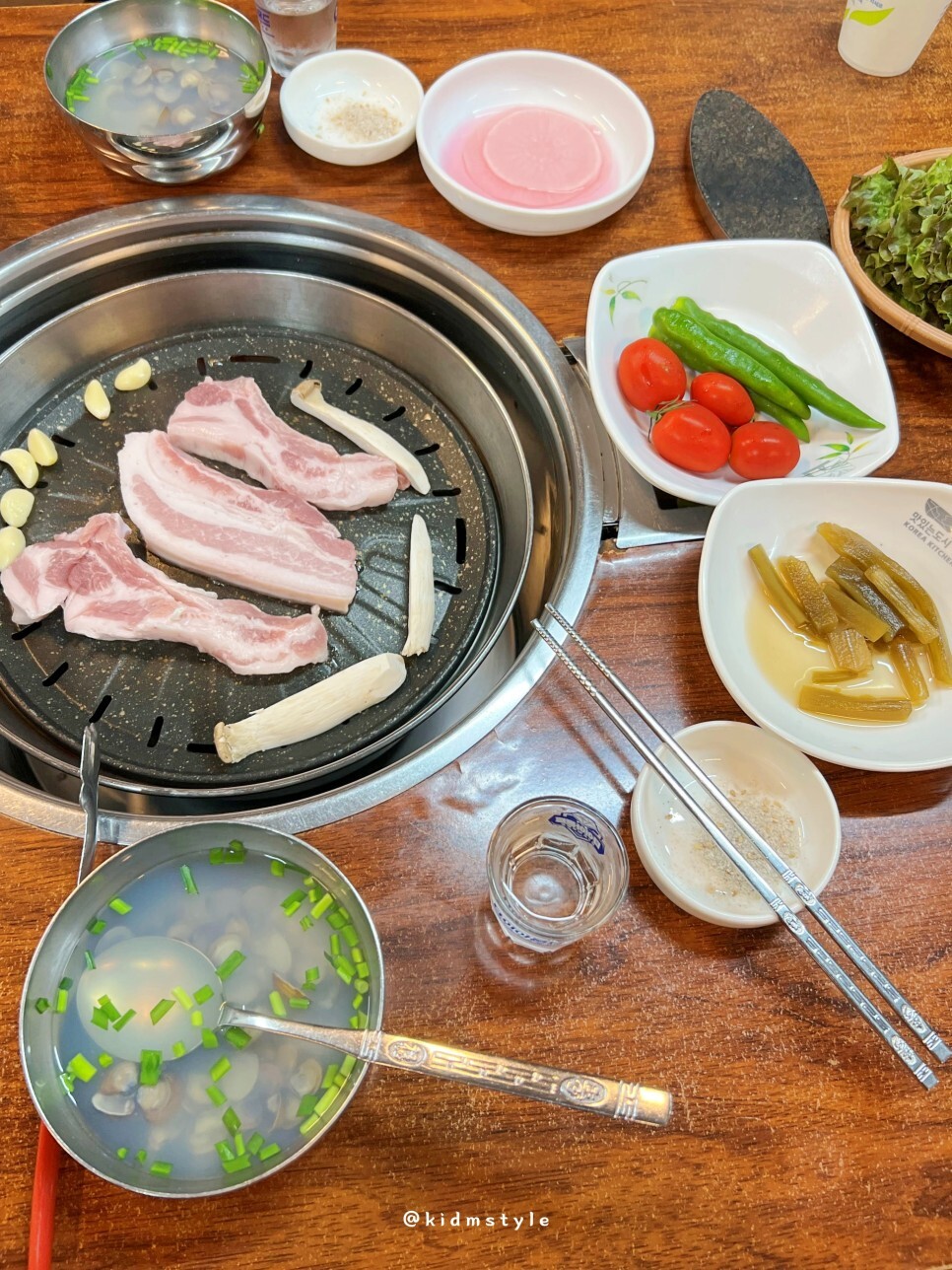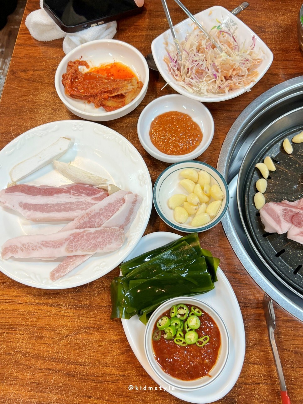 상추가 비쌌던 시점인데 여기는 그런 거 없다. 이 부분도 상당히 마음에 드는 점이다. 고기 먹을 때 상추, 깻잎이 없으면 아쉽잖아.