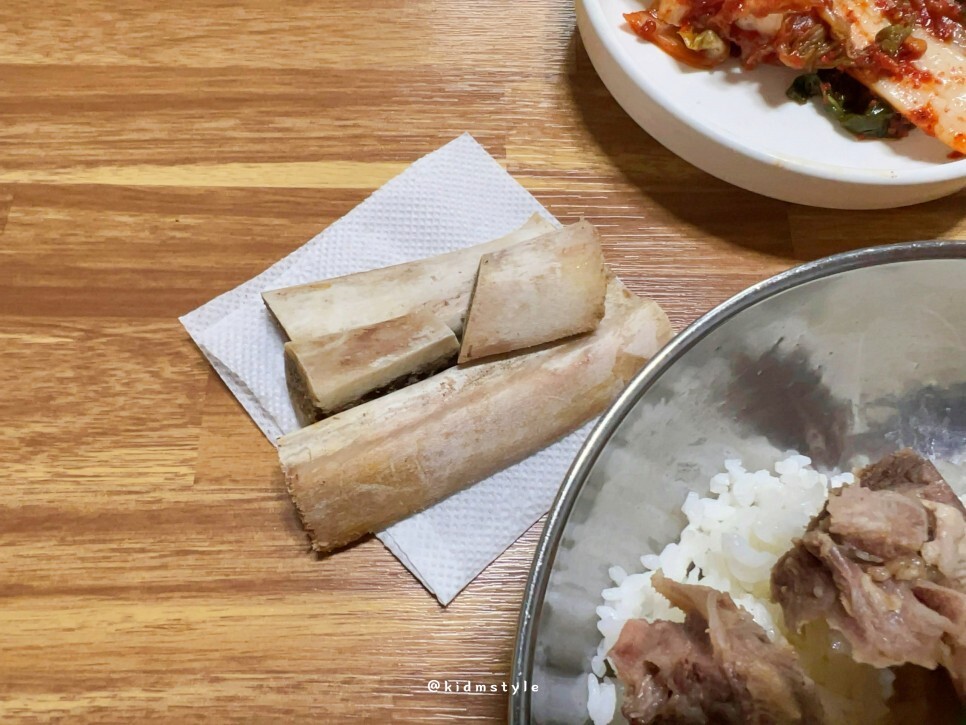 이런 커다란 갈빗대가 3개 정도 들어가 있어서 꽤 푸짐한 인상을 준다. 가성비도 참 좋은 곳이다. 그러니 이 좋은 안주에 소주 한잔하는 손님이 많을 수밖에.