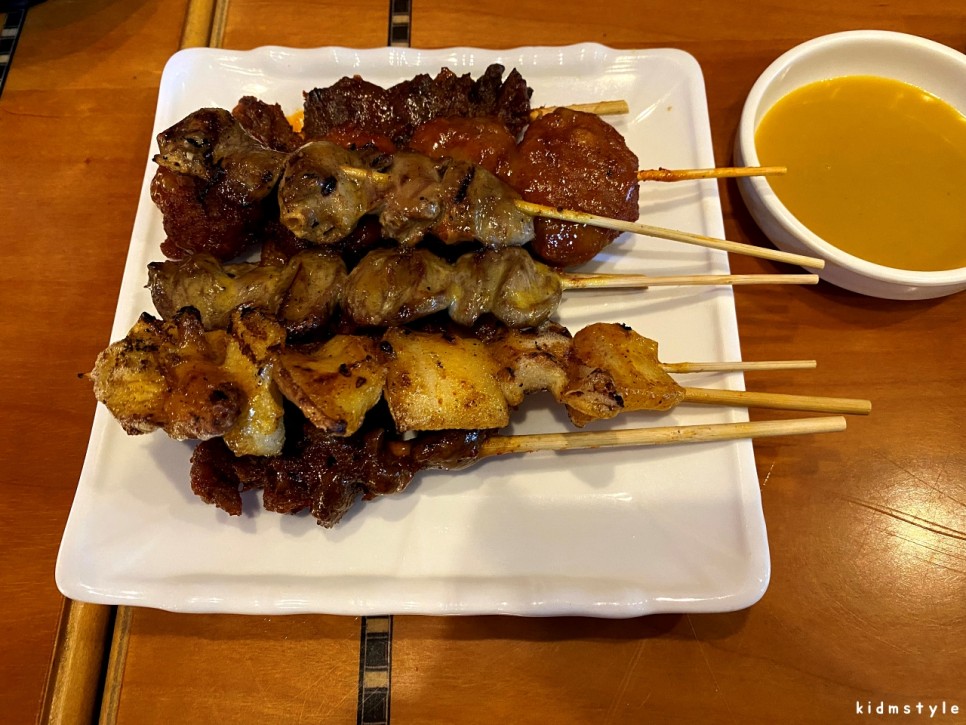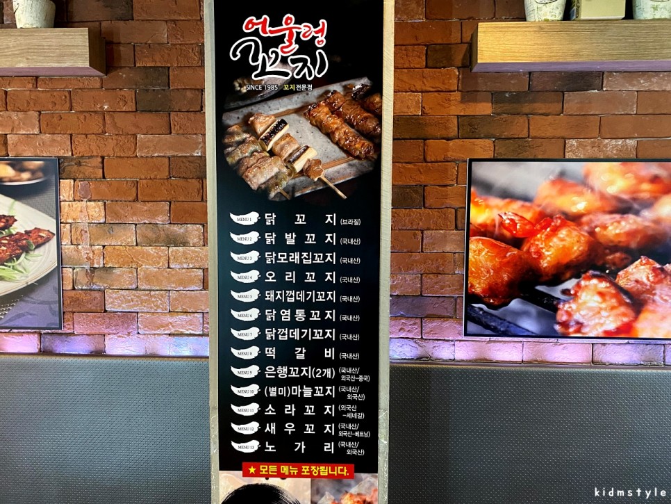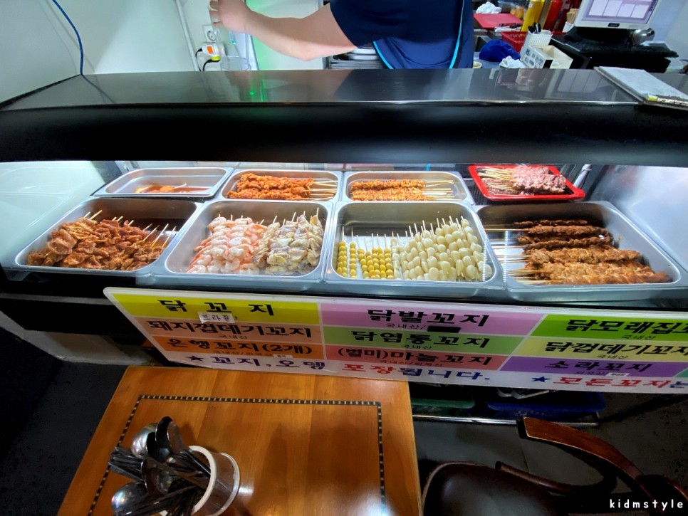 주방 앞쪽 카운터에 있는 쇼케이스에 이렇게 꼬지들이 잘 준비되어 있다.