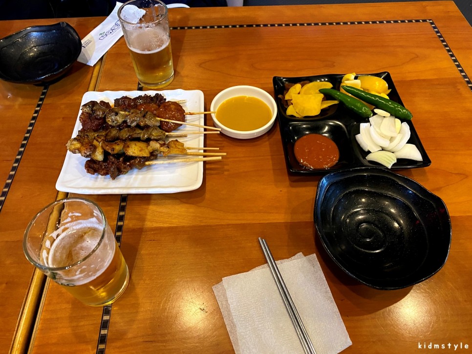 꼬치에 소주를 먹을지 맥주를 먹을지 늘 고민이다.