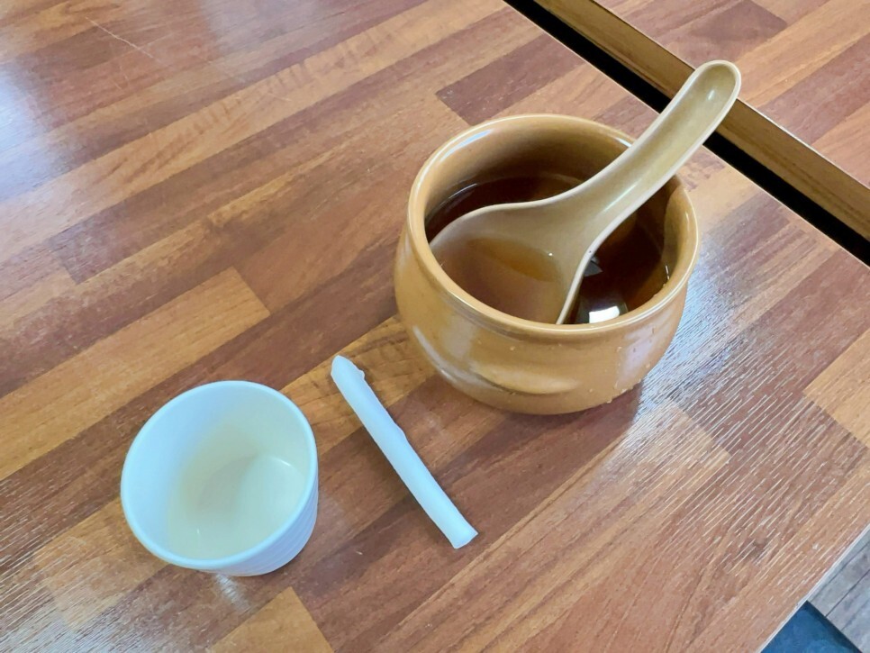 식사를 마칠 때쯤이 되면 이렇게 식혜를 한잔 주십니다. 적당히 달달하니 입가심하기 너무 좋습니다.