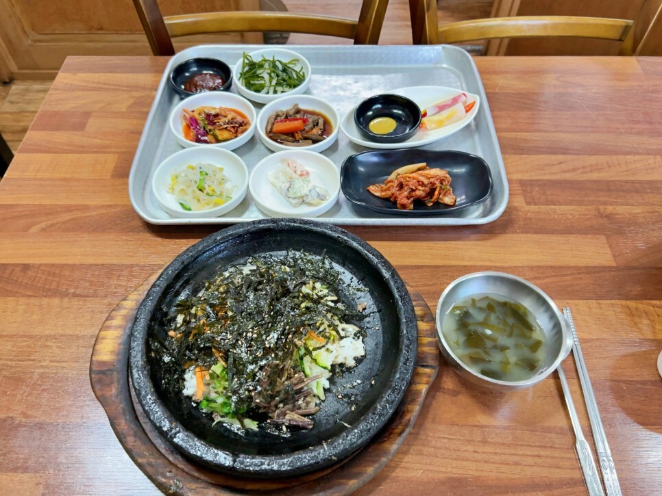 저는 돌솥비빔밥을 주문했습니다. 이집 돌솥비빔밥 꽤 맛있거든요. 조금 특이하기도 하고요. 이 식당은 30년이 넘게 영업 중인 노포 식당입니다.