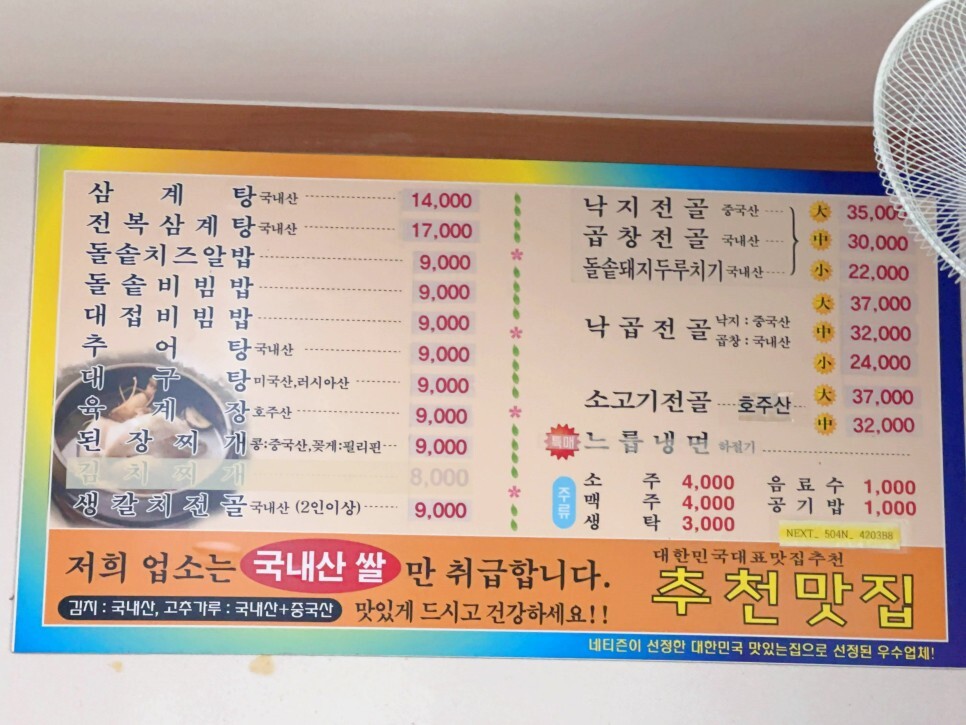 물 대신 보리차가 나옵니다. 예전에는 숭늉이 나왔는데 보리차도 반갑네요. 추운 겨울이 되면 숭늉이 다시 나올까요?