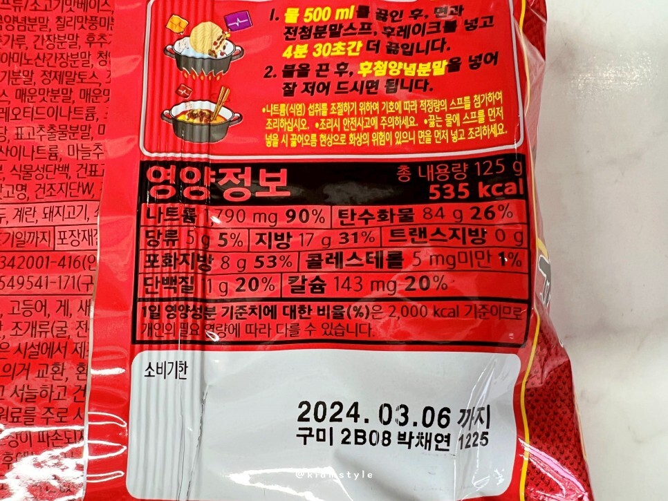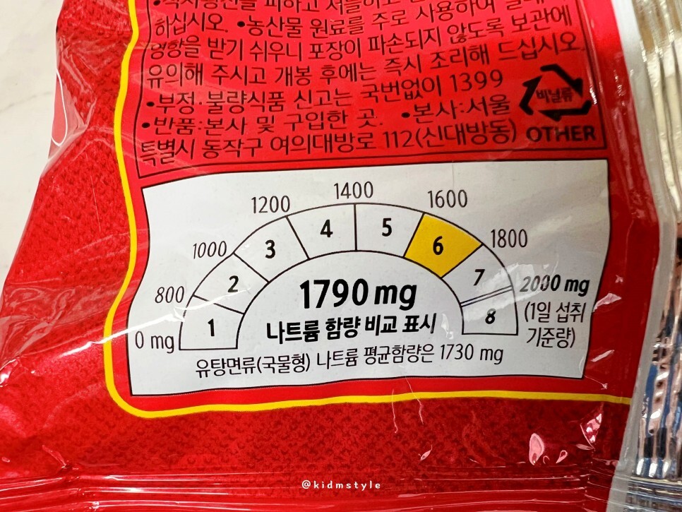 신라면 더레드 영양성분 정보 참고