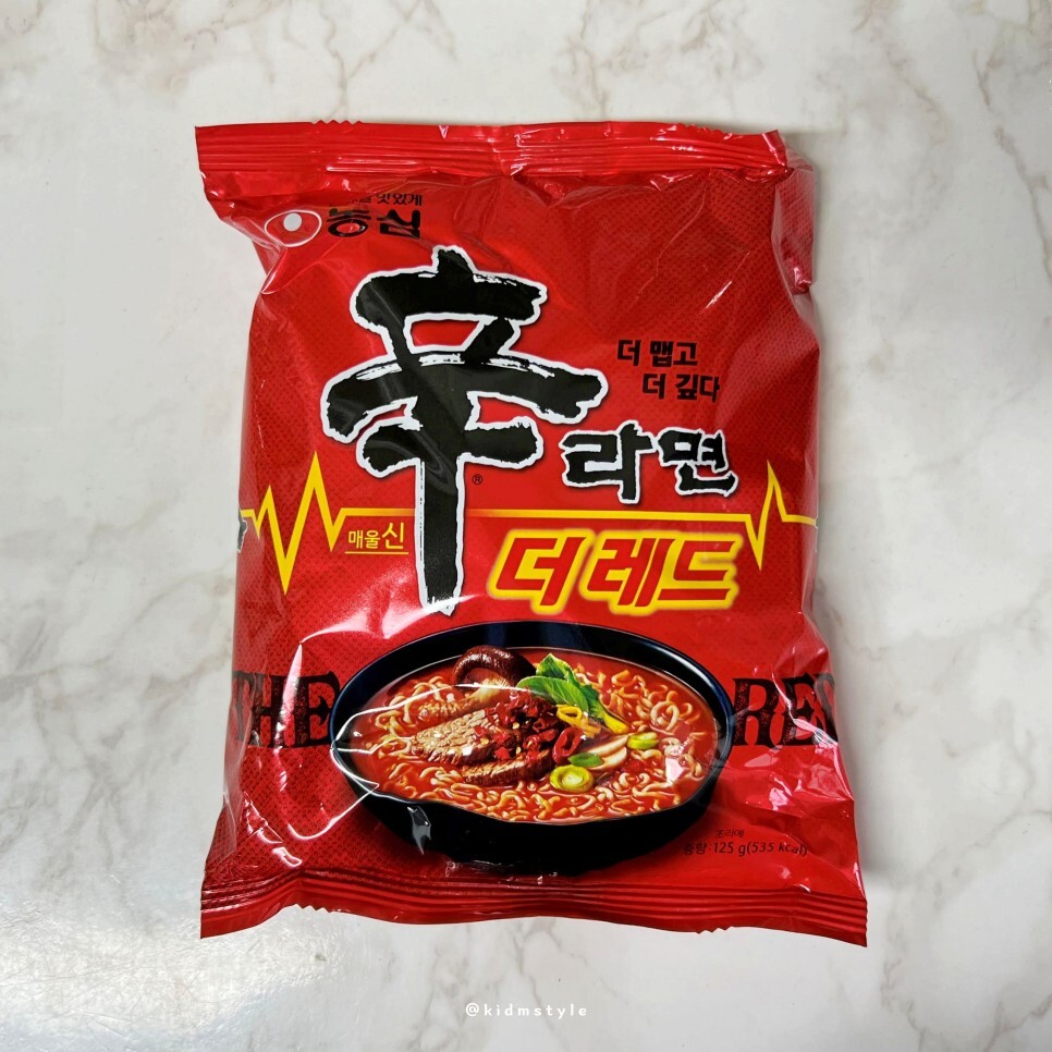 신라면은 매울 辛이라는 이름처럼 매운 라면인데 신라면 더레드는 더 맵고 더 깊다고 한다. 예전 신라면이 참 매웠던 기억이 나는데 최근에 나오는 신라면은 그렇게 맵지가 않더라. 그래서 더레드가 더 기대가 되기도 한다.